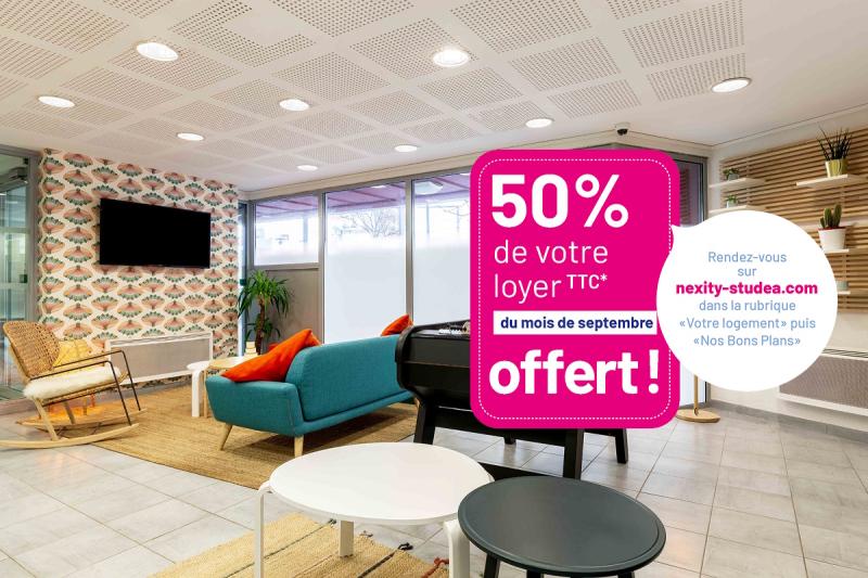 50% OFFERT SUR VOTRE LOYER TTC DE SEPTEMBRE ! Réservez votre appartement dès maintenant ! (Aucun engagement** en cas d’échec à votre examen). Offre valable pour tout contrat de location classique signé entre le 8 avril 2026 et le 2 juin 2026 inclus et ayant une date d’effet avant le 7 juillet 2026 inclus. Toutes les conditions de cette offre sont à retrouver dans la rubrique VOTRE LOGEMENT > NOS BONS PLANS SIMPLIFIEZ VOS SEJOURS DE COURTE DURÉE ! PROFITEZ D’UN APPART’ MEUBLÉ, EQUIPÉ ET CONNECTÉ ! Frais administratifs OFFERTS pour la signature de tout contrat de location ferme d’une durée de 1 à 6 mois maximum débutant entre le 13/10/2025 et le 31/08/2026 inclus. Offre complète à découvrir dans la rubrique BONS PLANS