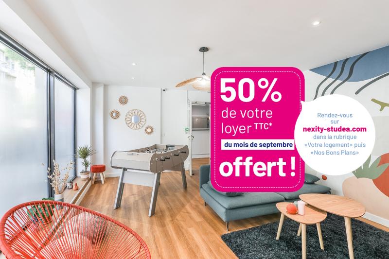 50% OFFERT SUR VOTRE LOYER TTC DE SEPTEMBRE ! Réservez votre appartement dès maintenant ! (Aucun engagement** en cas d’échec à votre examen). Offre valable pour tout contrat de location classique signé entre le 8 avril 2026 et le 2 juin 2026 inclus et ayant une date d’effet avant le 7 juillet 2026 inclus. Toutes les conditions de cette offre sont à retrouver dans la rubrique VOTRE LOGEMENT > NOS BONS PLANS SIMPLIFIEZ VOS SEJOURS DE COURTE DURÉE ! PROFITEZ D’UN APPART’ MEUBLÉ, EQUIPÉ ET CONNECTÉ ! Frais administratifs OFFERTS pour la signature de tout contrat de location ferme d’une durée de 1 à 6 mois maximum débutant entre le 13/10/2025 et le 31/08/2026 inclus. Offre complète à découvrir dans la rubrique BONS PLANS